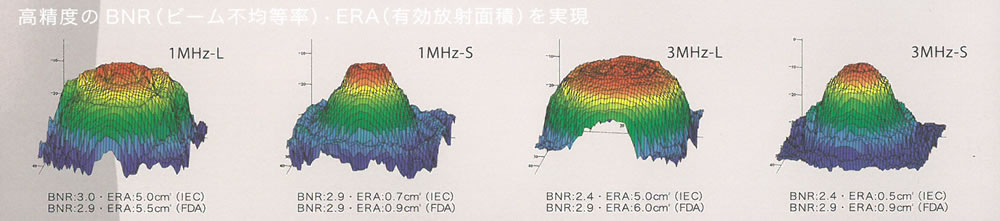 高精度のBNR・ERAを実現した超音波治療機器と、電気刺激モードを搭載した低周波治療器を1台に。ULTRASOUND 超音波深部に働く1MHz、浅部に働く3MHz。ミクロマッサージ作用と立体加温の効果。